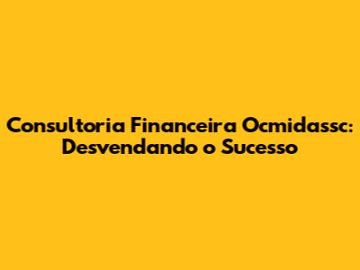 Consultoria Financeira Ocmidassc: Desvendando O Sucesso
